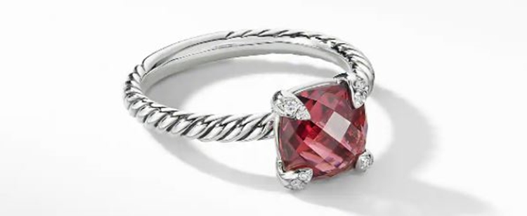 데이비드율만 샤트렌 반지는 특유의 꼬임 링에 큼직한 스톤이 세팅되어 있습니다. 섬세한 세공의 링도 아름답지만 스톤을 적절하게 강조하는 디자인입니다. 실버 링과 18K 골드 링이 있으며 실버 링에는 8mm 스톤이, 골드 링에는 7mm 스톤이 세팅됩니다.