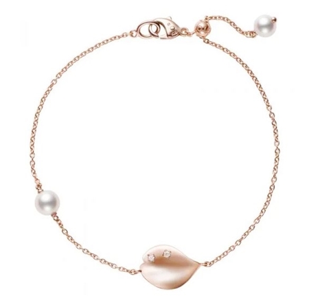 미키모토의 '긴자의 꽃잎' 팔찌는 이름부터 아름답습니다. 파리의 방돔 광장에서 흩날리는 장미 꽃잎을 모티브로 만든 팔찌입니다. 유려한 꽃잎 모양의 팬던트가 포인트이고, 길이 조절이 가능해서 기분에 따라 다른 분위기를 연출할 수 있습니다.